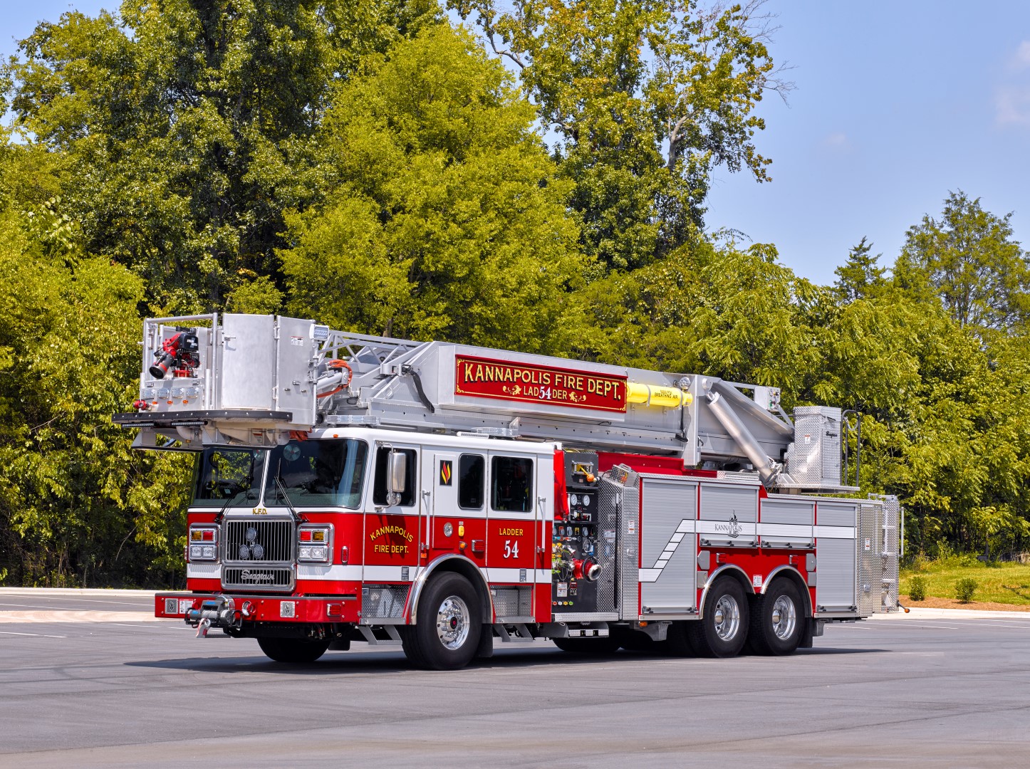 High performance rear-mount 105' platform. Available with Marauder II or Attacker HD custom Seagrave chassis.